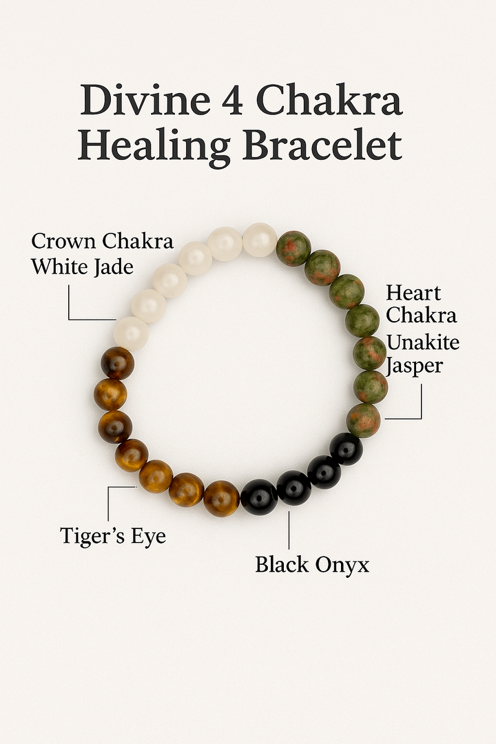 4 Chakra Healing Energy Bracelet – Natural Crystal Beads for Balance & Protection