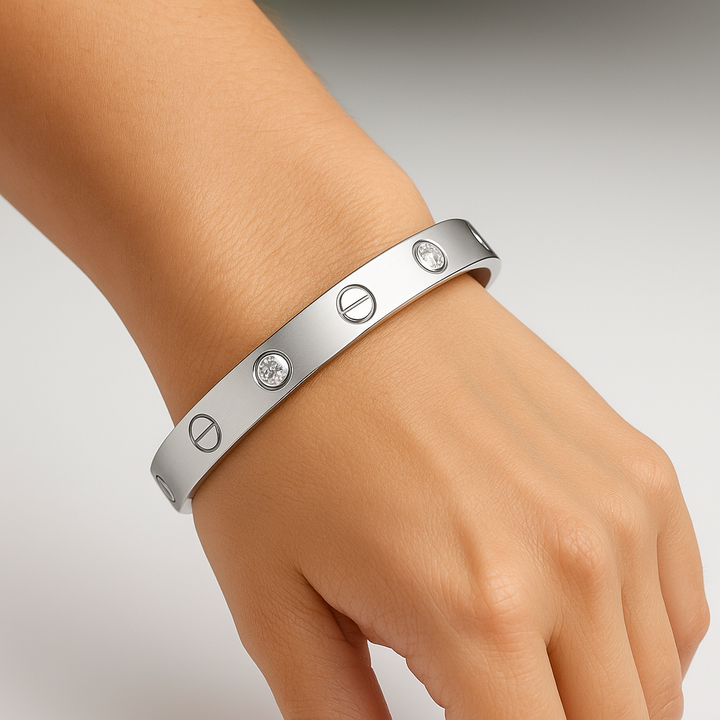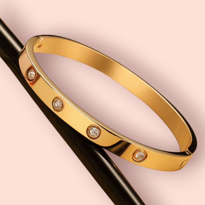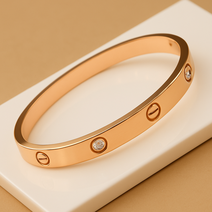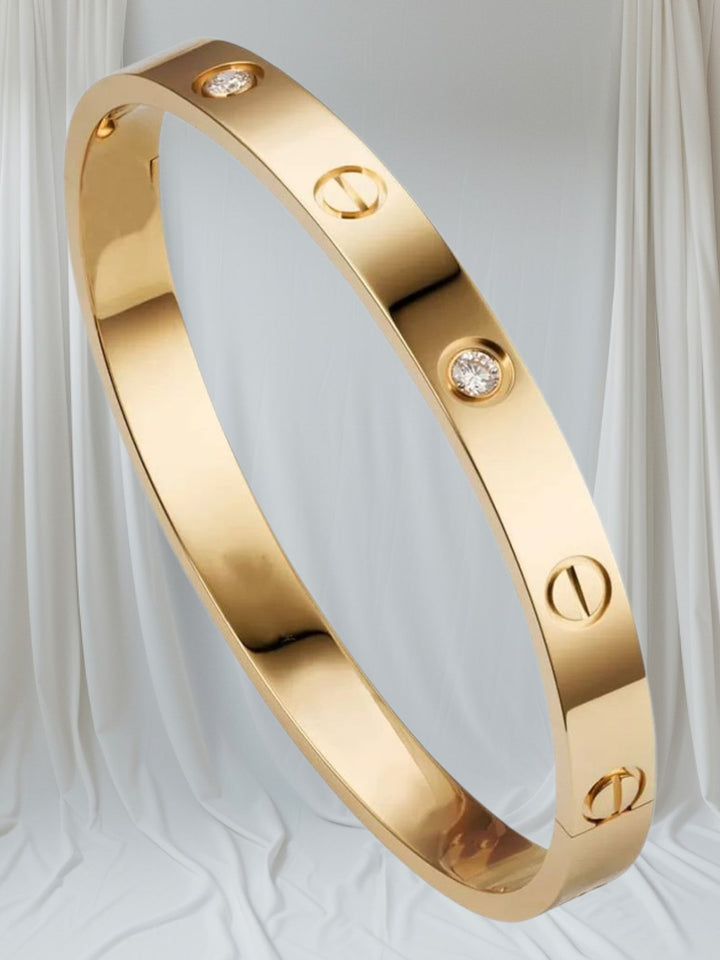 er tones. Designed with a secure screw mechanism, these sleek bangles offer a perfect fit for both women and girls. The set is complemented by an 18k gold bracelet featuring an anti-tarnish finish, ensuring long-lasting shine and elegance. Ideal for adding a sophisticated touch to any outfit, this combination brings versatility and timeless appeal to your jewelry collection.