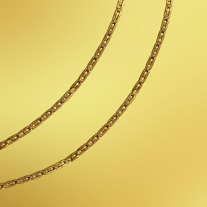 Experience timeless elegance with this Luxury 18k Dual Plating Stylish Golden Neck Chain, crafted for both men and women. Its dual plating technique enhances durability and offers a rich golden sheen that resists tarnish. Designed to complement any attire, this versatile chain provides a refined look suitable for daily wear or special occasions. Elevate your jewelry collection with a piece that combines sophisticated style and lasting quality.