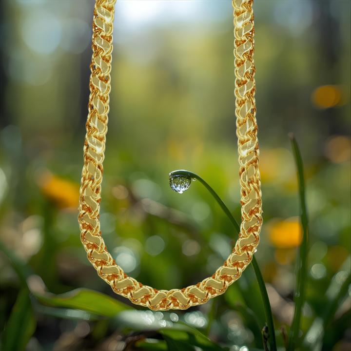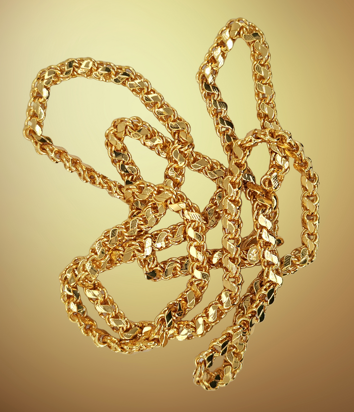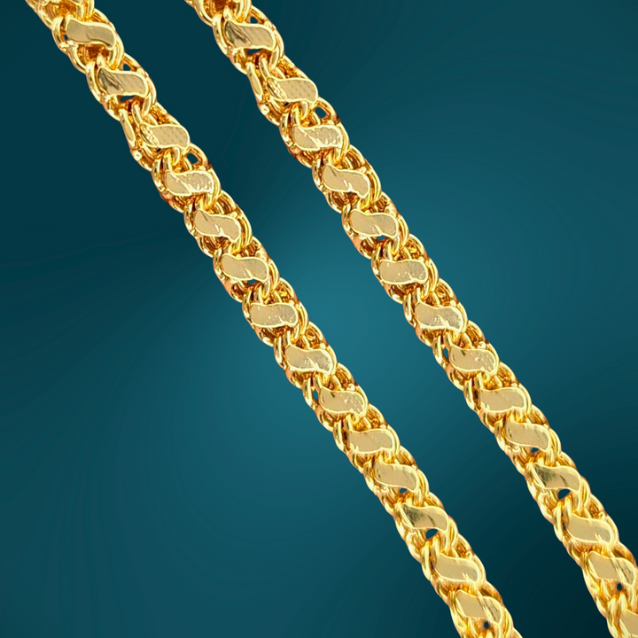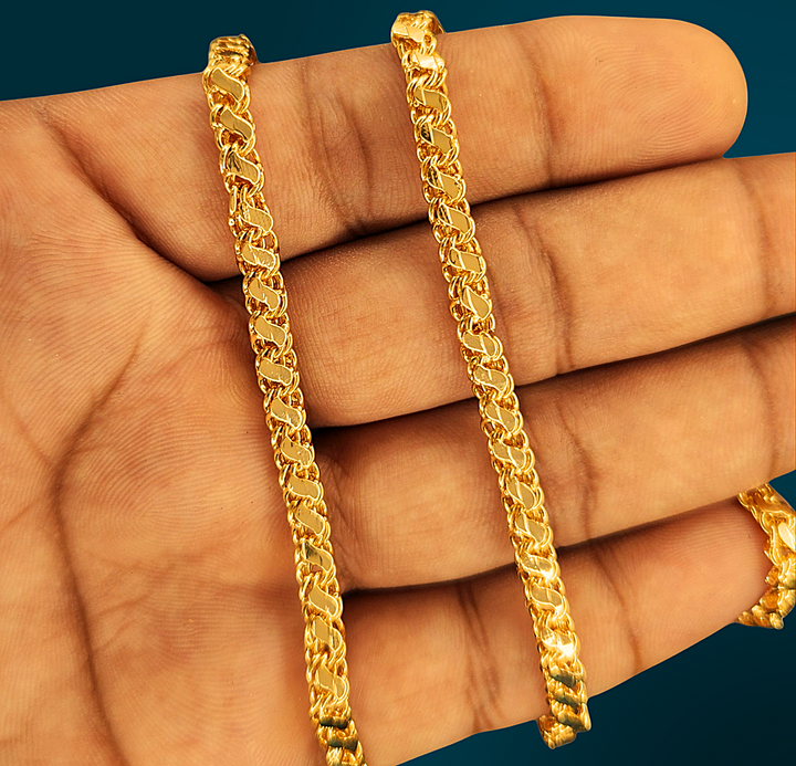This premium gold plated designer chain offers a perfect blend of style and durability for daily wear. Crafted to suit both men and women, its sleek design enhances any look, providing a versatile accessory that complements casual and formal attire alike. Engineered for longevity, this chain maintains its shine and elegance, making it an essential addition to your everyday jewelry collection.