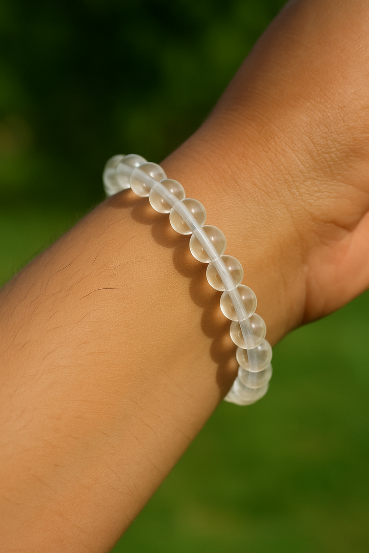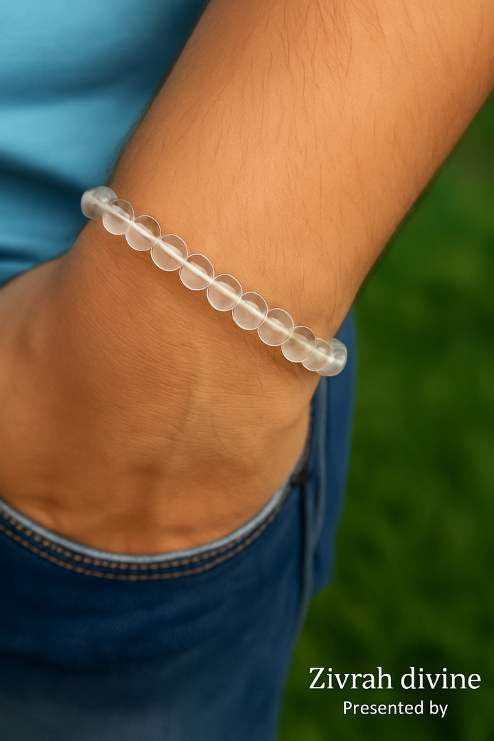 Natural Sphatik (Clear Quartz Crystal) Healing Energy Bracelet – Positive Vibes & Spiritual Protection